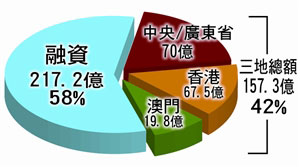 三地資本一共157.3億元,約占大橋主體建設(shè)費(fèi)42%,余數(shù)額將透過貸款解決。預(yù)計(jì)大橋?qū)⒉贿t于2010年動(dòng)工興建,最快2015年落成。