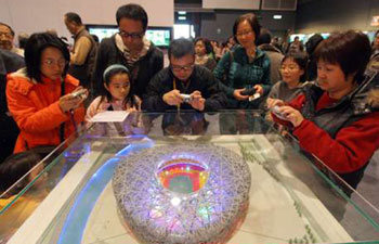 圖:男女老幼都被鳥巢模型吸引,爭相拍照留念。(圖片來源:大公報)
