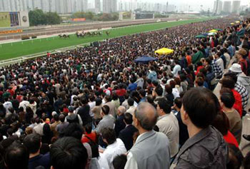 “資料圖:2008年2月9日” 二月九日,香港沙田馬場舉行新春賽馬,吸引大批市民入場。 中新社發(fā) 武仲林 攝
