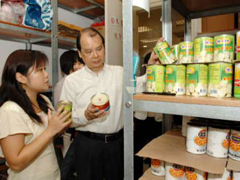 香港社署撥款資助食物援助計劃,圖為張建宗早前參觀食物銀行。(圖片來源:大公報)