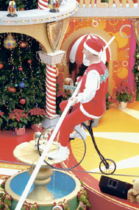 Peter Mario駕著單車(chē)在鋼在線表演,這個(gè)動(dòng)作至少要十年功力。(圖片來(lái)源:香港明報(bào))