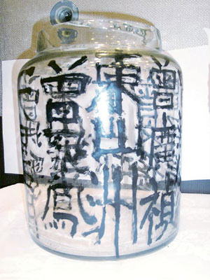 任何物品都可以成為曾灶財的“畫布”,包括這個玻璃瓶和上面的醫生診癥紀錄紙。(圖片來源:香港明報)