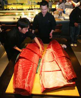一行五人的段氏表示,從新聞上得知有“魚王”出現在香港,昨晚特意前往有出售“魚王”的雪村壽司一嘗,認為價達150元一件藍鰭吞拿魚腩刺身并不貴,因為機會難得。“藍鰭吞拿魚越大條越好味,今次魚系日本原產,味道會特別濃。”他們分別點了五件價值90元的吞拿魚壽司及價值150元一件的刺身,品嘗過后,他們表示口感比一般刺身好,是高級的刺身。
