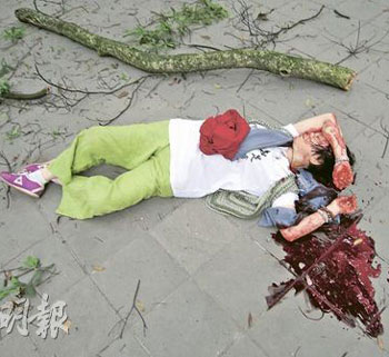 由于言語不通,小文幾經(jīng)艱辛,終在他人協(xié)助下將重傷的胞姐送往都江堰某醫(yī)院,不料市內(nèi)有兩間醫(yī)院也損毀倒塌,且斷水?dāng)嚯姡缍褲M了尸體及傷者。數(shù)小時(shí)后,小文與已陷入昏迷的姐姐擠上載滿傷者的救護(hù)車,前往成都四川省人民醫(yī)院求醫(yī)。