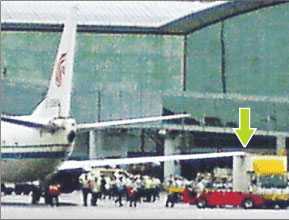 8日上午11時53分,客機降落后預備泊進34號停泊位,其間右邊機翼末端撞及旁邊運送物資工程貨車的車頂,傳出巨響。目擊者稱,機翼與貨車車頂擦撞范圍有2至3尺,眾人恐怕意外引發機翼和機肚油缸爆炸,貨車司機立即跳車狂奔。多個部門人員聞訊紛紛趕至,疏散飛機上近百人,氣氛一度緊張。