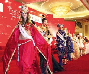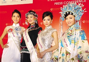 中新網10月29日電 據澳門日報報道,63位來自世界各地的國際小姐候選佳麗28日以代表其地區的服裝亮相,各具特色。代表澳門出戰、以一襲粵劇戲服現身的呂蓉茵認為粵劇在澳門深受歡迎,且國家正積極將粵劇申請為世界非物質文化遺產,穿上華麗的粵劇戲服,感覺能充分代表澳門及國家的文化。