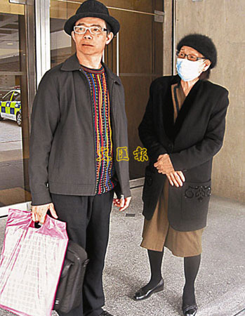 梅媽爭產敗訴,須自付堂費。圖為她由兒子梅啟明陪同出庭。(圖片來源:文匯報)