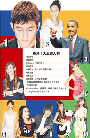 該網絡搜索器香港的市場部經理張晶說,每年的熱門關鍵詞都是取決于當年的新聞,全世界的熱門搜尋關鍵詞都是以本土明星為主,但今年香港則出了一個異數——美國候任總統奧巴馬緊隨陳冠希及鐘欣桐之后,成為2008年香港最多人搜尋的風云人物第3位,更是十大政治相關搜尋的第1位,共和黨副總統候選人佩林也令人意外位列第3。