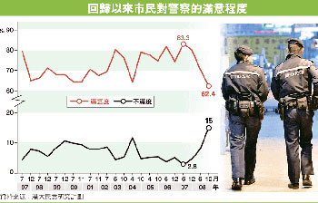 廖也說:“由于市民對公務員、公職人員要求高,加上以往警方滿意度都很高,稍有行差踏錯,影響便會較大,相信在近期事件影響下,市民要一段時間才能回復信心。”