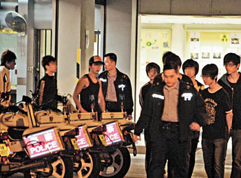 中新網3月2日電 據香港媒體報道,2名盤踞屯門友愛村的新義安黑少年,日前在藍地遭同門毒打“教訓”,其頭目不甘受辱1日晚召集黑幫青年兵團準備大報復,香港警方新界北沖鋒隊及時趕至,當場拘捕包括18歲小頭目在內25名青年男女,成功阻止一場黑幫內訌廝殺。