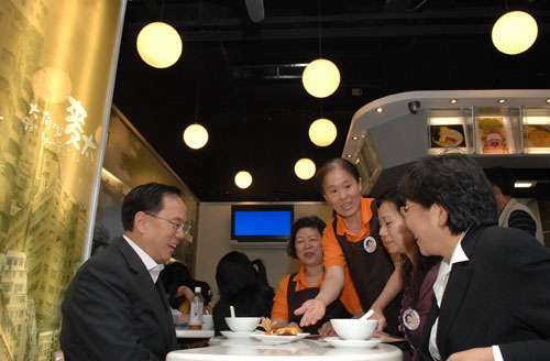 在結束訪問前,曾蔭權到訪地鐵奧運站一間商場內的甜品店,該甜品店是由東華三院賽馬會大角咀綜合服務中心營運的社會企業,為區內失業單親中年婦女和低學歷雙失青年提供就業機會。除了售賣多種甜品外,甜品店亦零售“麥嘜麥兜”產品和提供家居服務。