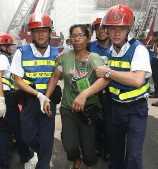 八月十日上午九時許香港旺角嘉禾大廈發生五級火警,大火焚燒了近六個小時在下午三時許救熄。 中新社發 洪少葵 攝