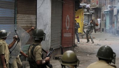 29日,在印控克什米爾地區(qū)安南塔那加(Anantnag),數(shù)千名示威者上街抗議,向安全部隊(duì)人員扔擲石塊,用棍棒襲擊警察,警方則發(fā)射催淚瓦斯回?fù)簦⒈黄乳_火,打死3名平民示威者。