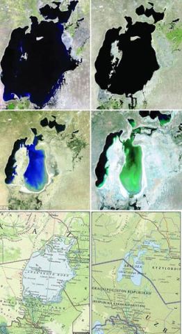 烏茲別克斯坦和哈薩克斯坦之間咸海縮小(1960年代)