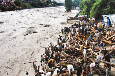 巴基斯坦北部凱伯爾-普什圖省是重災區,進入緊急狀態。貝沙姆地區泥石流,將多間房屋掩埋,活埋49人。賈爾瑟達地區一個新建堤壩崩塌,5000棟房屋被洪水沒頂,估計40萬人被困西北部各村落。