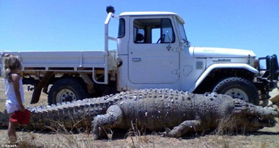 據稱,這條鱷魚從鼻子到尾部總長為22英尺(約合6.7米),相當于一輛卡車的長度。現在這條巨型鱷魚已經被當地農民射死,因為它一直在襲擊牛羊等家畜。