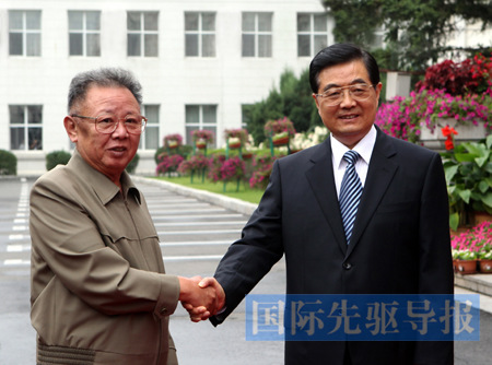 8月27日,中共中央總書記、國家主席胡錦濤在長春同朝鮮勞動黨總書記、國防委員會委員長金正日舉行會談。