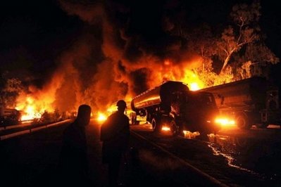 中新網10月7日電 綜合報道,塔利班分子6日在巴基斯坦西部奎達附近出擊,攻擊北約部隊的一支運輸車隊,燒毀20多輛運油車,有一個司機不幸身亡。之后,在西北部城市瑙謝拉,又有至少36輛油罐車遭武裝分子襲擊起火。連昨天的兩次攻擊在內,過去的一星期內,這類事件已經發生5次。