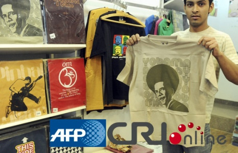 奧巴馬訪問印度前,新德里一家商店兜售印有奧巴馬頭像的T恤。(AFP/國際在線)