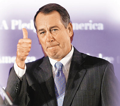 共和黨眾院領(lǐng)袖博納勢必取代民主黨人佩洛西,明年1月成為新眾議院議長,博納表示,選舉結(jié)果反映選民要求華府“改變道路”。奧巴馬當(dāng)天午夜致電博納,祝賀共和黨重奪眾院控制權(quán)。選前奧巴馬表示,只要共和黨不推翻已通過的法案,他愿與共和黨合作。
