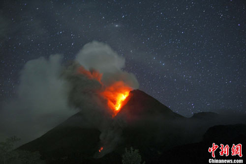 中新網11月5日電 據外電報道,印尼中部爪哇省默拉皮火山5日繼續噴發,熾熱煙灰順著火山流下,燒毀了山腰上的一座村莊,從昨晚開始,附近居民在一片混亂中緊急撤離。此次噴發造成18人死亡,還有58人受傷。