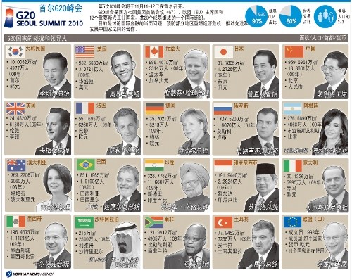 中新網11月11日電 綜合外電報道,備受關注的二十國集團(G20)峰會11月11日將在韓國首都首爾舉行。此間媒體預測,G20首爾峰會將以匯率、全球金融安全網、國際金融組織改革和發展為四大主要議題。