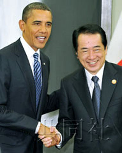 中新網11月13日電 據日本共同社13日報道,日本首相菅直人13日上午在橫濱與來日參加亞太經合組織(APEC)峰會的美國總統奧巴馬舉行會談。兩國首腦就進一步“深化”同盟關系達成一致。會談結束后,奧巴馬向記者表示,美國將“毫不動搖”地堅持保衛日本這一決心。