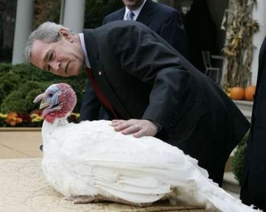 這個(gè)星期四就是美國一年一度的感恩節(jié),美國總統(tǒng)布什特別依照慣例,在白宮赦免了2只火雞,溫馨又有趣。今年總共有2只火雞得到總統(tǒng)的免死金牌,分別叫“May”和“Flower”,也就是當(dāng)年清教徒來到新大陸所搭乘的“五月花號(hào)”的意思。
