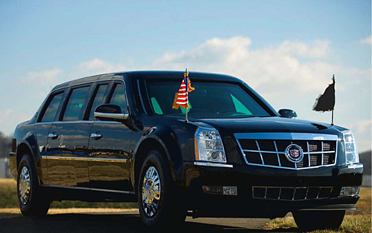 根據特勤局所公布的圖片,這是一輛通用汽車制造的凱迪拉克車,它與以往的總統座車相比,增大了車窗面積,可讓總統擁有更充足的視野。當然防彈功能是絕對的,此外,這車還具有完全隔絕外部氣體的功能,能有效防御化學武器襲擊。而車上也安裝了訊息加密的通訊設備。