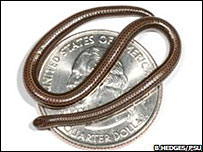 據英國廣播公司報道,發現這種微型蛇的海格斯博士說,這種巴巴多斯島特有的小蛇以食白螞蟻為生。研究人員說,這種小蛇屬于線蛇類,而且非常罕見,因此直到最近才被發現。