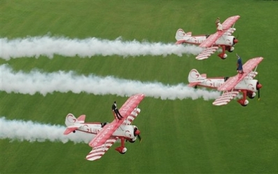 新人在1000英尺高空大聲起誓,飛機拖出一道道白煙。