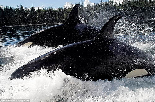 據(jù)英國《每日郵報》報道,攝影師奧爾夫-希克近日在加拿大溫哥華附近海域拍下了三頭野生殺人鯨(學(xué)名為虎鯨)在水中群舞的照片。