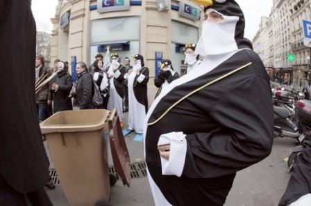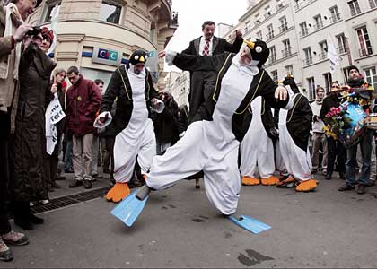 巴黎示威者扮成企鵝抗議氣候變化會議召開