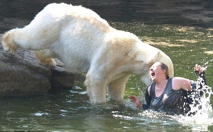 中新網(wǎng)4月12日電 據(jù)英國《每日郵報(bào)》報(bào)道,日前,一名德國女子突然跳進(jìn)北極熊館內(nèi)熊進(jìn)食的區(qū)域,4頭北極熊中的一頭游近她并襲擊她。她的手、臂、腳和背部被熊嚴(yán)重咬傷,但沒有生命危險(xiǎn)。