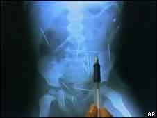 據英國廣播公司報道,男孩的母親把他送到醫院之后,醫生經由X光片發現男孩體內有多支長達兩英寸(約5公分)的縫衣針。其中一支縫衣針還進入了男孩的肺部。