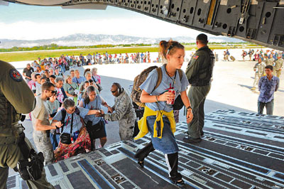中新網(wǎng)1月18日電 據(jù)香港《文匯報(bào)》18日報(bào)道,海地7級大地震后,美國空軍接管首都太子港機(jī)場,但機(jī)場運(yùn)作仍亂作一團(tuán),而且?guī)缀踝兂擅绹藢S脵C(jī)場,一切以撤離美國公民為優(yōu)先,連其它國家的救援飛機(jī)也不允許降落。據(jù)報(bào)一架載運(yùn)野地醫(yī)院設(shè)備的法國飛機(jī)要求降落,但不獲許可,法國外長已正式向美國駐法國大使館提出抗議。