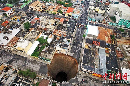 中新網6月2日電 據香港《文匯報》報道,熱帶風暴阿加莎橫掃中美洲,造成至少150人死亡。受到連場暴雨影響,危地馬拉城一處出現地面下陷,形成一個深60米、直徑30米的地洞。