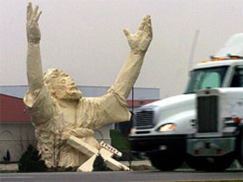 這座大型雕像建于2004年,使用木材及塑料制成,一直是當地的知名地標。教會表示,雕像將會重建,而且會使用防火材料。