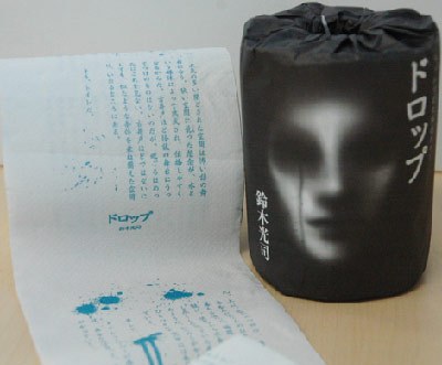 這篇印在衛生紙上的恐怖小說為鈴木光司的新作《Drop》,共9章,內容恰好是發生在公共廁所里的故事。為配合人們通常每次如廁用紙約80厘米的使用量,在80厘米長的衛生紙內印有差不多2000字,正好可在幾分鐘內讀完。