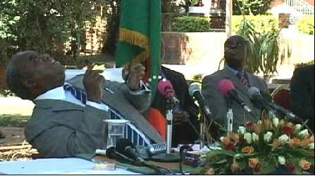 據法新社報道,贊比亞總統魯皮亞-班達25日在總統府外舉行的一個新聞發布會上向記者發表講話時,一只猴子撒尿在他身上。