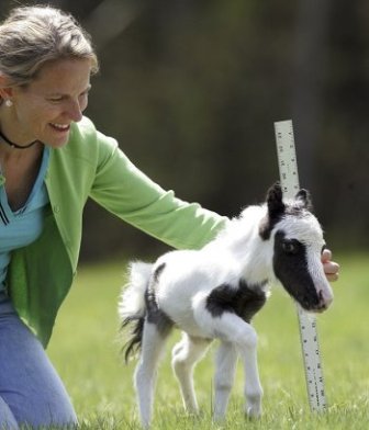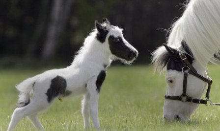 據(jù)報道,這匹擁有白毛黑斑的小馬一出生就相當(dāng)?shù)男。抑挥?磅重,比之前吉尼斯世界紀(jì)錄最小的馬還輕3磅。盡管身材矮小,但它的全身比例非常均勻。