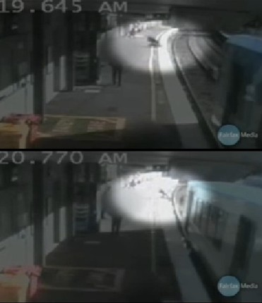站臺上,嬰兒和祖母以及乘客們都被這一幕驚呆了,目瞪口呆,過了一會兒才知道朝站臺邊緣跑去。