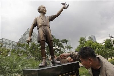 中新網12月10日電 綜合外電報道,一座美國總統奧巴馬兒童時期的銅像10日在印度尼西亞揭幕。