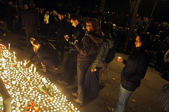 據學校同學和老師介紹,做案人名叫阿科什,性格內向封閉、不愛與他人交往、經常行為怪異、情緒易激動,可能患有精神疾病。事發時,阿科什與其它20名同學一起在實驗室做試驗,由于他莫明其妙地說話和敲打桌子,人們讓他離開。阿科什一言不發起身走開,但稍后回來時持著一把手槍,并朝室內開槍射擊。他使用的是一把子彈直徑為9毫米的原捷克斯洛伐克產帕拉貝倫手槍,遇害的同學身中五槍當場死亡。阿科什2007年開始學習射擊,擁有持槍許可證,為佩奇射擊俱樂部會員,但他此次行兇的原因仍在調查中。