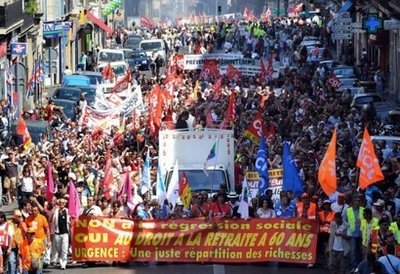 據新華社電 法國政府上周宣布退休改革草案,擬將法定退休年齡從目前的60歲提高到62歲。24日,法國全國發生大罷工,數百萬人走上街頭抗議這一“有損退休福利制度”的改革。
