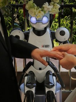 據(jù)報(bào)道,16日,一對(duì)日本新人在東京日比谷公園(Hibiya Park)一間餐館的開放式屋頂上共結(jié)連理,面對(duì)50多名賓客主持婚禮的,不是人類,而是一款名為“I-Fairy”(小精靈)的“美女”機(jī)器人。