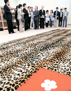 中新網5月27日電 據韓國《中央日報》網站報道,26日,韓國公開展示了用48只豹子制作而成的“大韓帝國”皇室地毯。