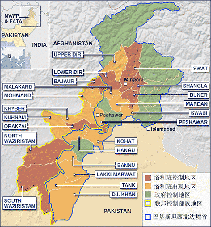 中新網5月14日電 由BBC所制作的一份關于巴基斯坦西北邊境省份的地圖顯示該省只有38%以及周圍的地區掌握在政府的控制之下。