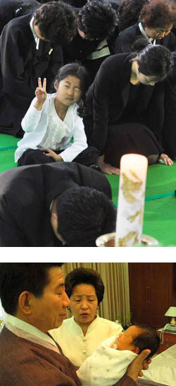 當時,盧武鉉的孫女盧緒恩(音)似乎并不知道爺爺去世,顯得天真無暇,這更使旁邊人悲痛萬分。發喪時,天真的小緒恩坐在權良淑女士旁邊向遺像做出“V”型手勢。