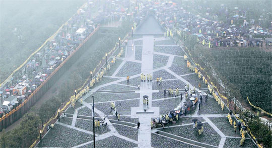 據報道,當天,在舉行盧武鉉逝世一周年追悼儀式的峰下村,大雨如注,然而前來追悼的客人仍然絡繹不絕。